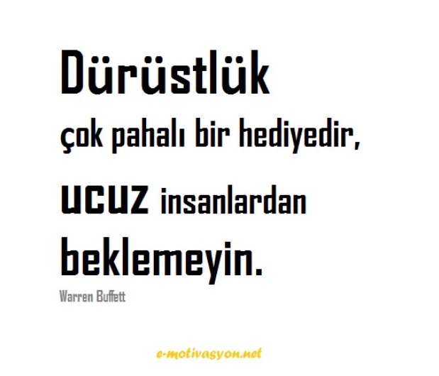 “Dürüstlük çok pahalı bir hediyedir, ucuz insanlardan beklemeyin.” Warren Buffett İnsanlara Dair Sözler, Resimli Özlü Sözler