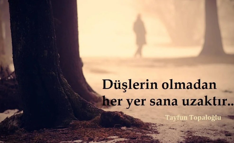 "Düşlerin olmadan her yer sana uzaktır." Tayfun Topaloğlu