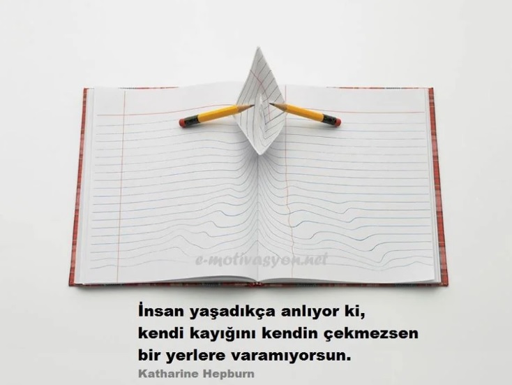 “İnsan yaşadıkça anlıyor ki, kendi kayığını kendin çekmezsen bir yerlere varamıyorsun.” Katharine Hepburn Eyleme Geçme Sözleri, Hayata Dair Sözler, Motivasyon Sözleri, Resimli Özlü Sözler